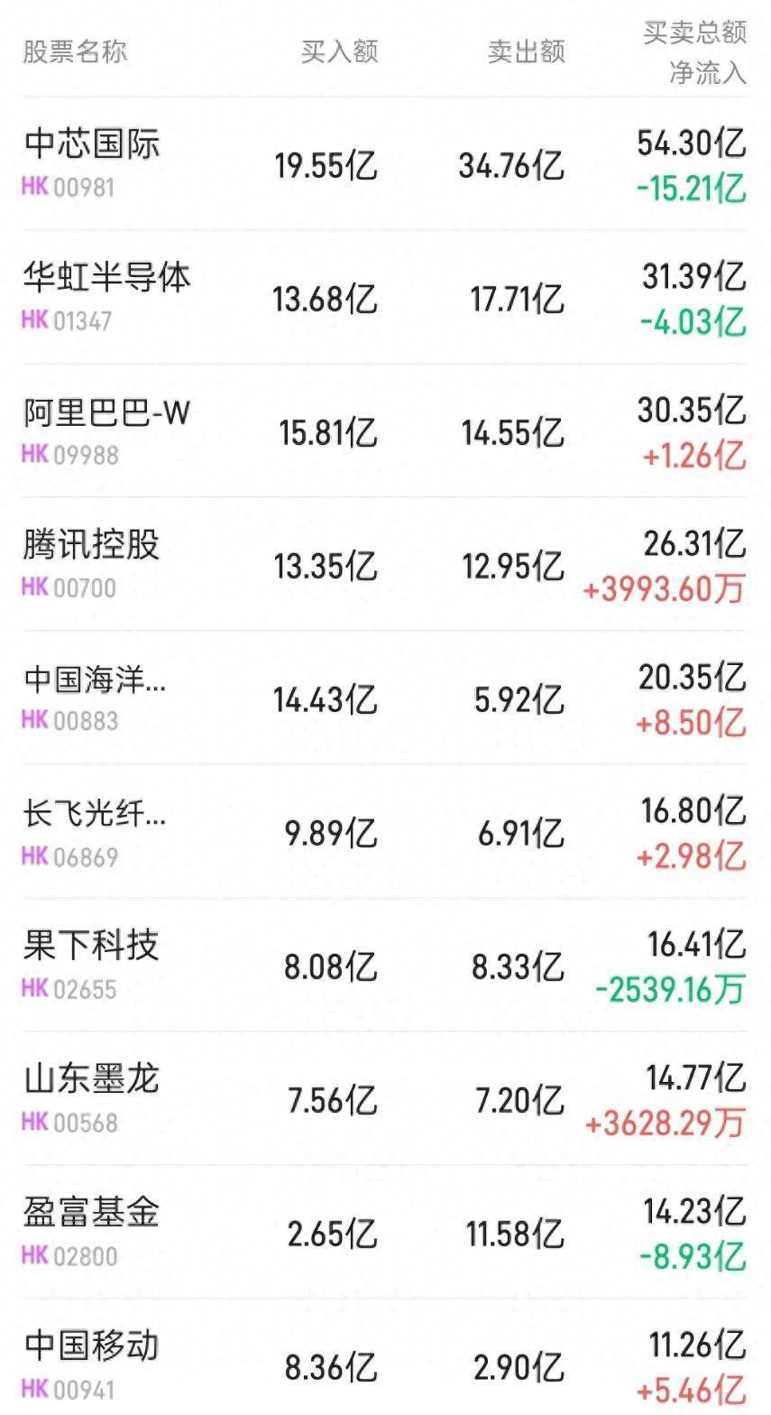 中国移动(00941)获净买入5.46亿港元。消息面上,中国移动一季度营业收入为2,665亿元,同比增长1.0%,增速较为温和,主营电信业务收入同比下降1.1%;净利润同比下降4.2%至293亿元。花旗认为,中移动首季纯利轻微低市场预期。瑞银预期投资者反应中性,认为首季业绩符合预期,并遵循管理层全年指引,而增值税调整的影响已获投资者充分认知。